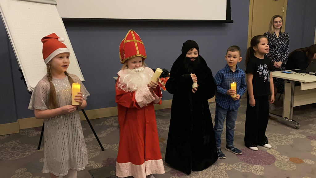 Das Programm war äußerst vielseitig angelegt: Die Referentinnen und Organisatoren griffen zahlreiche Aspekte der deutschen Kultur auf – darunter die Feier des katholischen Weihnachtsfestes, Workshops zur Herstellung traditioneller Weihnachtsdekorationen sowie Bastelarbeiten und Souvenirs für Kinder. Besonders in Erinnerung geblieben sind uns die musikalischen Einheiten mit Irina, für die ein warmes, stimmungsvolles weihnachtliches Liedrepertoire ausgewählt wurde. Auch der Deutschunterricht bei den Lehrerinnen Svetlana und Marta verwandelte sich in eine Atmosphäre der Freude und Kreativität.
