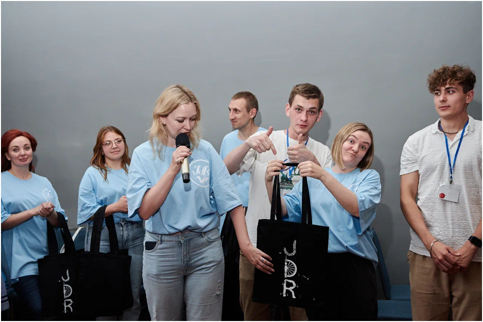 „Man geht den Flur entlang und trifft Teilnehmer, die zu ihren Blöcken eilen. Plötzlich unterhält man sich auf Deutsch. Und wenn man dann mit Kollegen im Organisationsraum über Themen diskutiert, wechselt man selbst ins Deutsche. Solche natürlichen Sprachübergänge sind ein entscheidender Indikator dafür, dass Deutsch in unserem Umfeld nicht nur eine Zweit- oder Fremdsprache ist. Es ist in uns lebendig. Man braucht nicht einmal besonders gute Sprachkenntnisse, um es zu verstehen. Meiner Meinung nach ist eines der Ziele des Projekts, Sprache als lebendiges Kommunikationsmittel zu demonstrieren, Wege zu ihrer Weiterentwicklung aufzuzeigen und einen starken Anreiz zum weiteren Lernen zu bieten. Und den Kommentaren der Teilnehmer nach zu urteilen, ist uns das gelungen! Ich bin dem Projektteam und dem Vorsitzenden für ihre Professionalität und Unterstützung unglaublich dankbar, ebenso wie den Teilnehmern für ihr aufrichtiges Engagement, ihre Freundlichkeit und ihre Bereitschaft, ihre Talente bei den JdR-Projekten zu entdecken.“