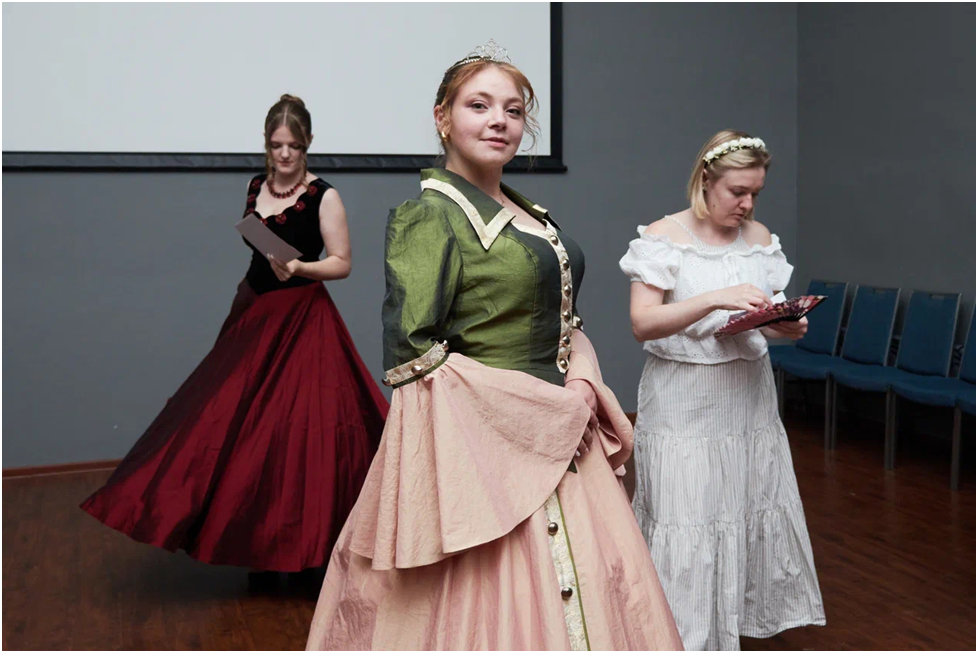 Jeden Abend zur vereinbarten Stunde erwarteten Ewgenij Martens und Emanuella Friesen alle im Saal. Am ersten Tag lernten sich alle spielerisch kennen, am zweiten Tag untersuchten sie das Verschwinden eines Dokuments, das die Herrnhuter zur Ansiedlung an der Wolga berechtigte (nach Alexandra Weiss (Derksen) „Siegel der Katharina“). Sie wagten sich intellektuelle Erkundungen und testeten ihr Wissen im Format „Was? Wo? Wann?“ (nach Galina Meladses Ausarbeitung). Sie lösten Logikrätsel, um den Geistern von Sarepta die letzte Ruhe zu geben. Sie erkundeten im Rahmen des „JdR-Tages 2025“ alle Stationen der russlanddeutschen Geschichte (nach Ekaterina Minkina, Elisaweta Selinskaja und Kirill Podrjadtschikows Ausarbeitung) und gewannen in einem spannenden Wettbewerb Zutaten für Kartoffelsalat.