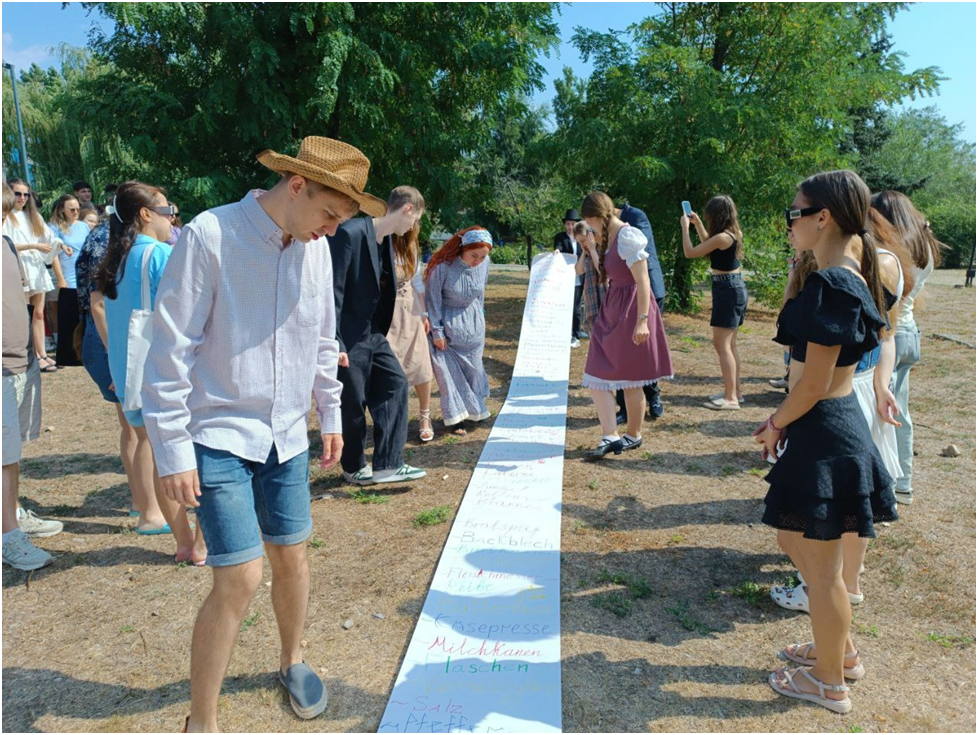 „Unter den Abendveranstaltungen kann ich die Recherche zu Katharina der Großen besonders hervorheben; die schauspielerischen Fähigkeiten der Organisatoren hätten einen Oscar verdient. Auch bei der Abendveranstaltung am 24. August, bei der wir in Teams arbeiteten, konnte ich meinem Team beim Lösen von etwa fünf Logikaufgaben helfen. Meine Grundkenntnisse in Deutsch wurden in dieser Runde durch meine Mathematikkenntnisse ergänzt, und ich konnte hilfreich sein.“ – Anna Rybkina, Orenburg