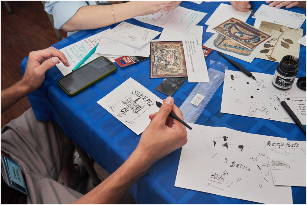 In Stanislaw Leschins „Medienraum“-Block konnten die Teilnehmer ihren Einfallsreichtum und ihre Fantasie bis an die Grenzen ausleben: In 20 Minuten mussten sie Beiträge aus der Sicht der Kolonisten schreiben, Videos zum Thema des Tages drehen, beispielsweise eine Werbung für ein Produkt aus Alt-Sarepta, ein Kochvideo, Memes erstellen und eine Reihe kreativer mystischer Fotos schießen. Galina Meladses Block war ebenso kreativ: Man stellte Hochzeitszeremonien nach, bastelten Schlüsselanhänger, die von Sprüchen inspiriert waren, und erstellten Wunschkarten, die am letzten Tag von allen unterschrieben wurden. Die Teilnehmer identifizierten die Heilkräuter für Sarepta-Balsam anhand ihres Duftes, entdeckten ihre Eigenschaften und stellten ihren eigenen Kräutertee zusammen.