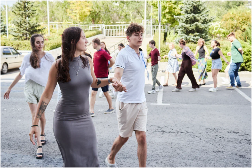 „Hervorzuheben sind auch die Ethnopausen, in denen die Teilnehmer russlanddeutsche Tänze lernten und den ganzen Tag über gut gelaunt waren. Es hat Spaß gemacht, wenn alle bei ihren ersten Versuchen Fehler machten und versuchten dann, sich zu korrigieren. Nach ein paar Versuchen tanzten sie genauso gut wie die Profis!“ – Polina Korjakina, Omsk.